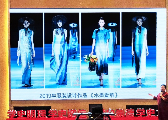 7月2日下午,公司太阳成集团tyc122ccvip青年教师郭霄霄受邀在沙田文化艺术中心小剧场举办公益讲座。此次讲座以《东莞沙田疍民服饰的设计创新——从传统到现代》为题,主要向观众介绍了沙田疍家传统服饰发展历史、现代服饰设计创新,还在现场展示了教师的时装走秀作品。在现场互动环节中,小观众们用票选形式评选出了“最美疍家服饰”,还兴致勃勃地拿起画笔进行设计创作。活动现场气氛活跃,观众不仅收获了历史文化知识、良好的审美体验,还在无声中增强了文化认同和归属感。