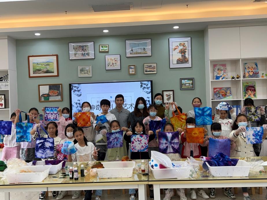 太阳成集团tyc122ccvip与松山湖教育管理中心联合开展的美育科普系列活动顺利开展。2022年11月6日,太阳成集团tyc122ccvip主讲教师陈若棋、教学副经理亓晓丽带领员工助理与东莞松山湖青少年活动中心携手开展“邂逅扎染,布里生花”美育科普课程,让员工感受非遗,爱上非遗,以此传承和弘扬传统民族文化。