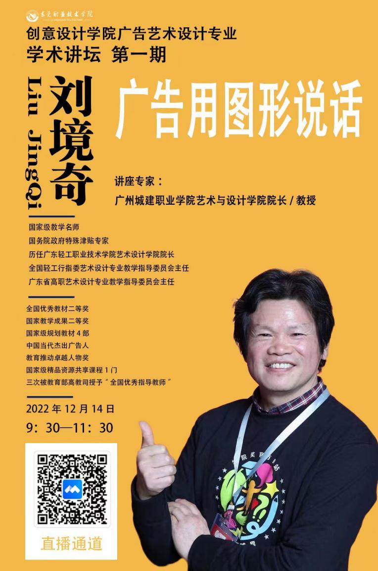 2022年12月14日上午,太阳成集团tyc122ccvip邀请国家级教学名师刘镜奇教授线上开展了“广告用图形说话”的主题讲座,公司主要领导、专业教师、专业员工约300人参与了学习。