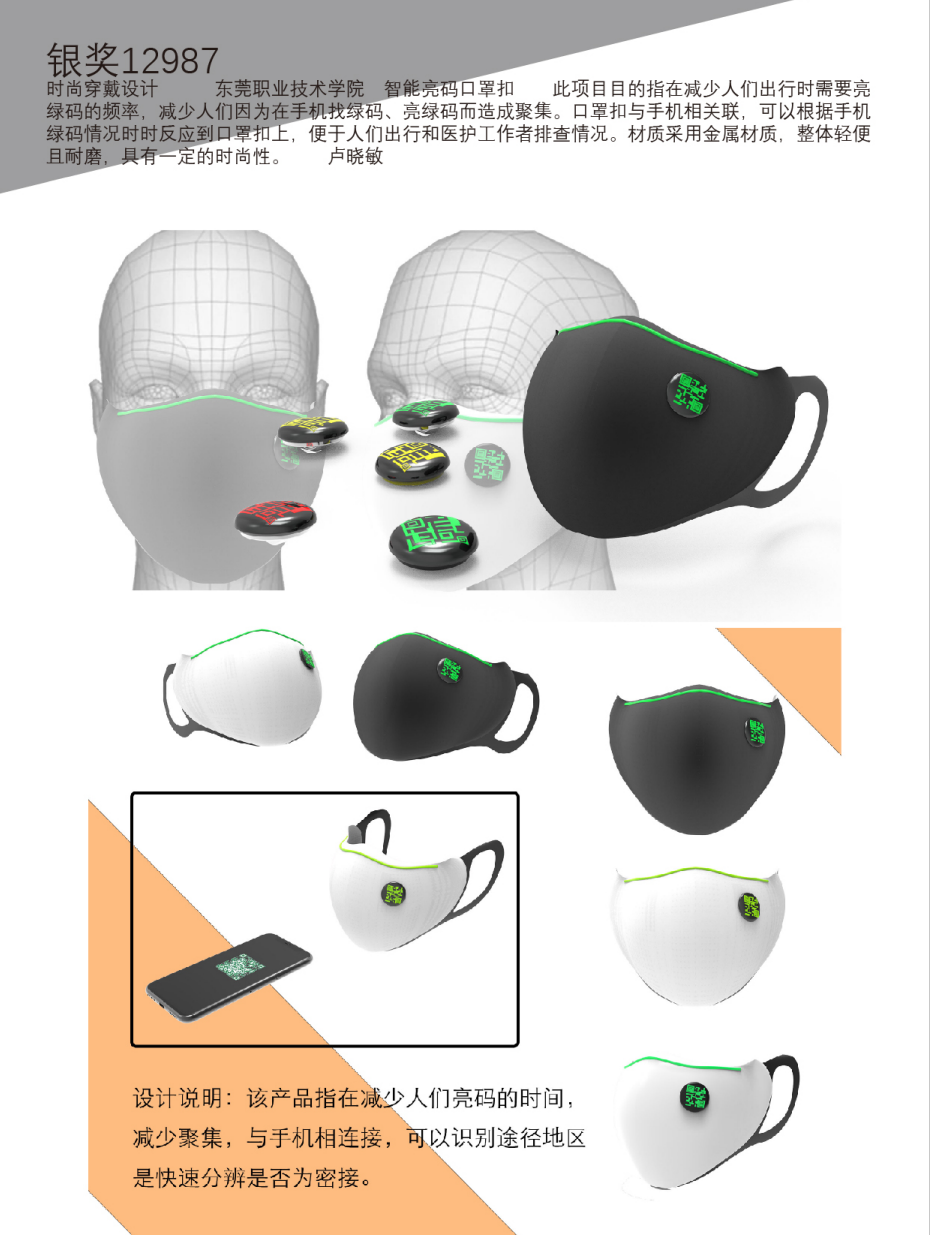 2020级工业设计专业员工卢晓敏的作品——“智能亮码口罩”(指导教师:吕珊)