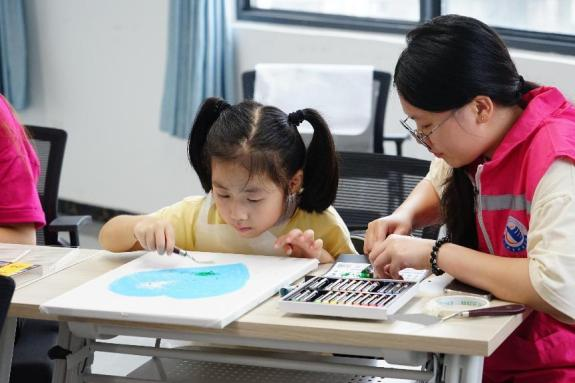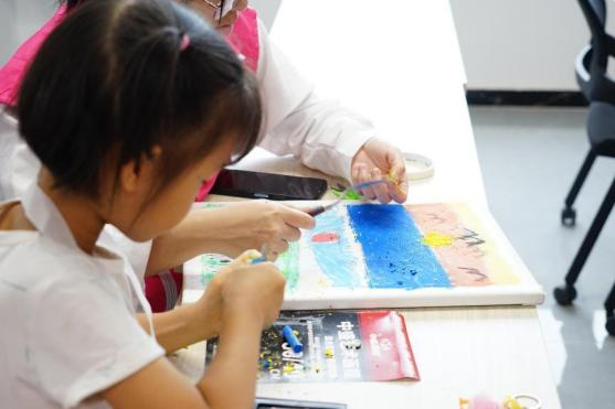 2023年6月7日,太阳成集团tyc122ccvip第四期“美学美育,欢乐童趣”——我为教职工做实事志愿服务活动在人文艺术大楼809开展,此次活动内容为油画棒体验与创作。活动过程中志愿者带着孩子们了解油画棒材料的特性,学习平涂、渐变、混色、点彩等绘画技巧,以“我眼中的夏天”为主题进行油画棒绘画体验。孩子们在活动中不仅学到了油画棒绘画的技巧,还成功完成了一幅幅精彩的油画棒作品,在丰富孩子们课余活动的同时,为他们的童年增加一份乐趣。
