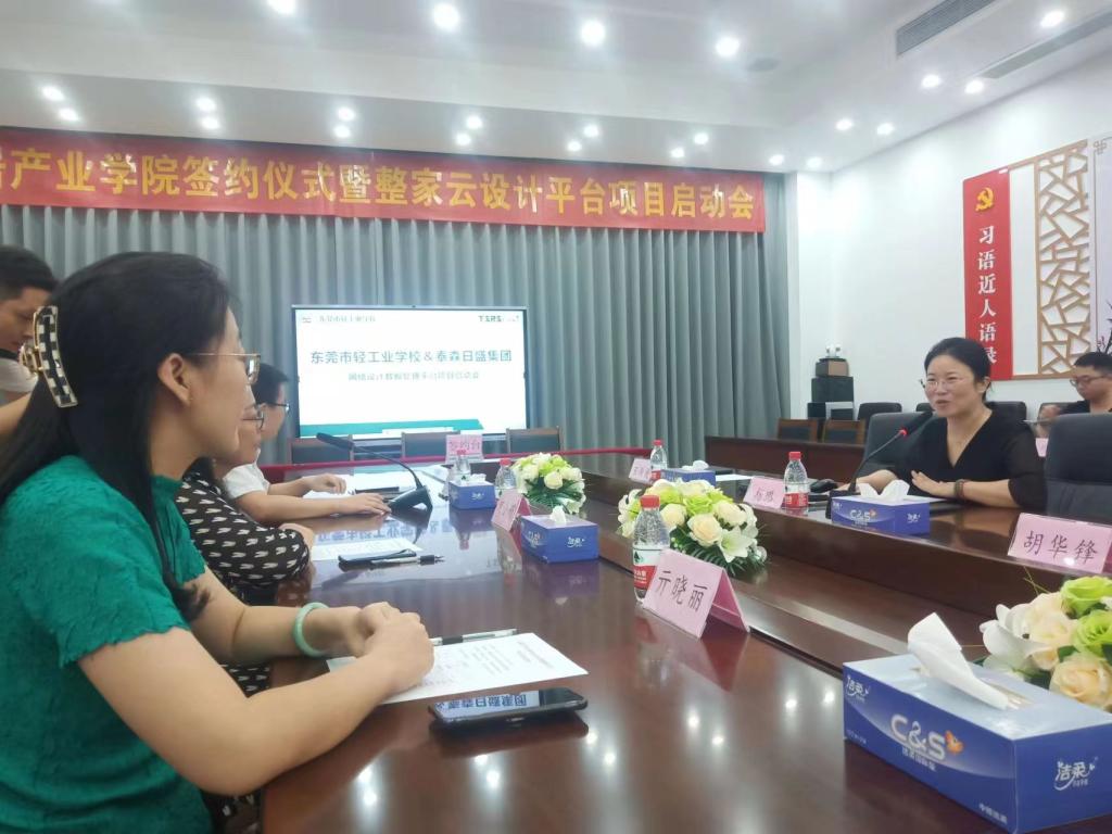 首先,副经理亓晓丽出席泰森日盛集团云设计平台启动仪式,泰森日盛集团董事长杨璐通过视频与图片,介绍了泰森日盛集团业务范围、业务合作对象、未来与高职教育的合作意向。董事长杨璐表示将充分依托现有资源,为公司员工提供良好的实习环境,全力支持公司家具专业人才培养和员工实习实践,拓宽双向选择渠道,拓展就业岗位。