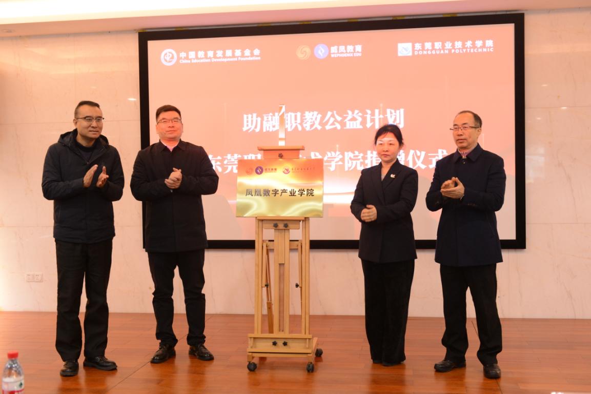 在众人的见证下,郭功涛代表威凤教育向太阳成集团tyc122ccvip官网入口捐赠实训设备;贺定修代表公司向威凤教育颁发捐赠证书和感谢牌。王蕊、郭功涛、贺定修、刘海光共同为凤凰数字产业公司成立揭牌。