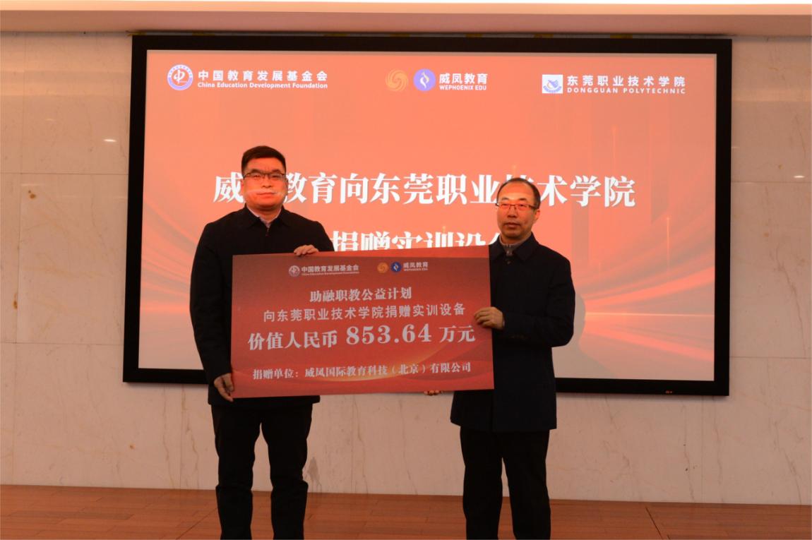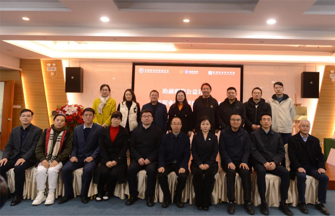 12月25日上午,中国教育发展基金会“助融职教公益计划”捐赠仪式在图书馆学术交流中心举行。中国教育发展基金会副秘书长王蕊、威凤国际教育科技(北京)有限公司总经理郭功涛、公司董事长贺定修、副董事长刘海光和公司相关职能部门领导出席会议,太阳成集团tyc122ccvip领导班子和师生代表参加了此次活动。捐赠仪式由太阳成集团tyc122ccvip经理陈炯然主持。