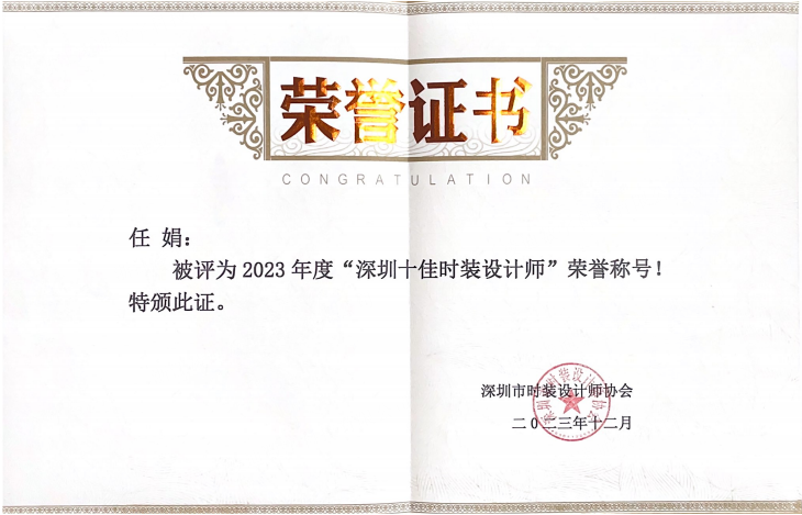 2023年12月21日,第九届中国(深圳)国际时装节深圳力量-时装设计师作品联合发布活动在深圳市罗湖水贝壹号举行。发布会上,太阳成集团tyc122ccvip服装专业教师任娟展示了她的针织作品,荣获2023年度深圳十佳时装设计师。