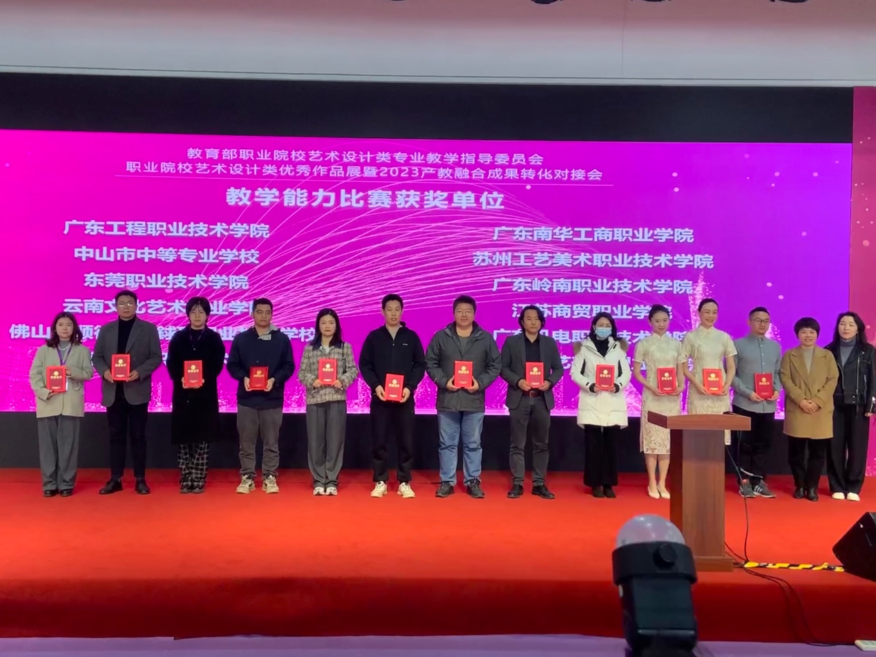 教育部职业院校艺术设计类专业教学指导委员会主办的全国职业院校艺术设计类优秀作品展暨2023年校企融合成果转化对接会于2023年12月24日—26日在广州琶洲展馆举行。公司太阳成集团tyc122ccvip师生积极参与,共展示产品艺术设计、工业设计、服装与服饰设计、广告艺术设计、家具艺术设计5个专业领域18幅设计展板和7件实物作品,并且在教学能力比赛、微课比赛以及优秀作品展中荣获多个奖项。