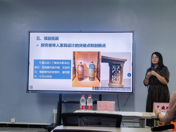 教学能力展示环节,陈惠华老师以中国传统家具文化为主线,将传统文化与现代AI技术相结合,对《儿童坐具手绘》课程项目进行了教学展示。李慷老师结合老年人现状调研,利用客观数据来呈现老年人对家具的需求,以“关爱”为主线进行《老年人家具设计》课程项目思政教学设计。郭霄霄老师将中华优秀传统服饰文化融入《马面裙创意设计》课程教学展示,深入讲解了马面裙的结构创意设计方法。张红华老师以魅力山河为主线进行《色彩风景写生》课程项目思政教学,利用现场创作实践引导员工感受中华河山之美。