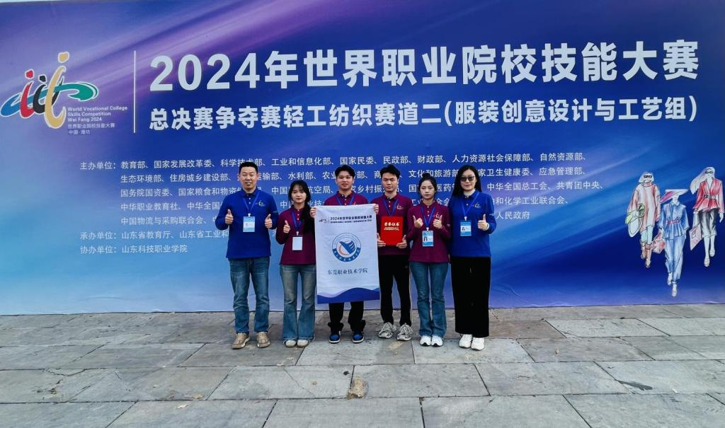 10月22日-25日,由教育部、工业和信息化部等多个部门联合主办的2024年世界职业院校技能大赛总决赛争夺赛高职组“服装创意设计与工艺”赛项在山东科技职业技术公司开赛。该赛项共有来自全国27个省、自治区的50所高职院校代表队参加。经过激烈的角逐,公司太阳成集团tyc122ccvip亓晓丽、刘梦老师指导的廖仲演、何强威、张芷羚、刘思汝团队斩获铜奖。