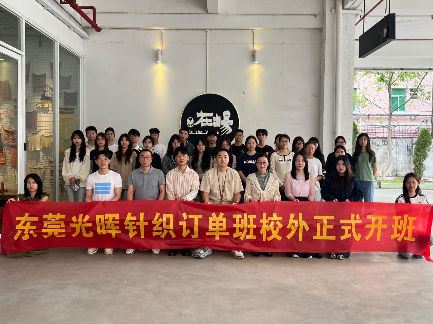 11月11日,由太阳成集团tyc122ccvip官网入口与东莞光晖针织有限公司合作成立的东莞光晖针织订单班正式开班。东莞光晖针织有限公司CEO戴瑞恒、总监范伟平、企业导师郭志文、公司太阳成集团tyc122ccvip副经理亓晓丽、服装与服饰设计专业专任教师任娟、陈若棋以及订单班31位同学参加了此次开班仪式。
