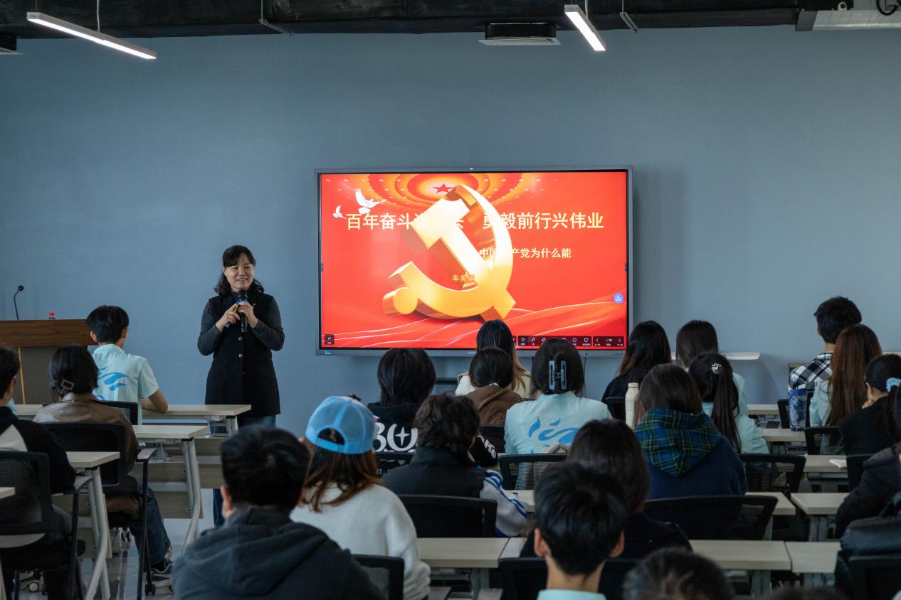 车书记首先简要回顾了党的百年辉煌历程,强调青年学子要铭记历史使命,将个人理想追求融入国家发展大局。她结合公司专业特色,鼓励同学们将创意与智慧转化为实际行动,为实现中华民族伟大复兴的中国梦贡献青春力量。
