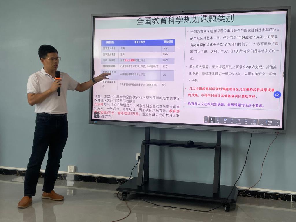 何教授强调课题申报对学术与实践创新的关键性,详细梳理申报流程,从选题要立足前沿、贴合需求,到申报书撰写需具备清晰目标、合理方法、充分依据与明确成果,结合自身经历与案例,深入剖析要点。案例分享环节,何教授选取多领域国家级课题案例,剖析成功要素与失败教训,尤其通过文化创意产业发展案例,凸显跨学科合作潜力。互动交流中,耐心解答师生疑问,给出实用建议。
