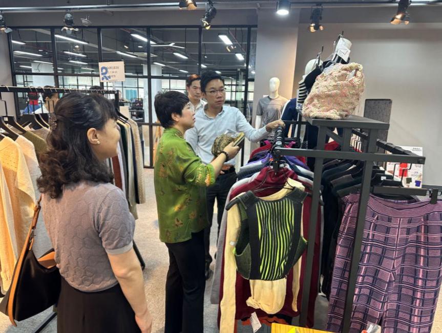 司书记一行在企业负责人引导下走访了面料检测中心、岛精设备经销中心、精品板房、展厅、大朗毛织服装产业公司教室,感受企业对品质的追求、行业前沿技术、产品设计工艺、企业实力及校企合作成果,其间司琪书记还慰问了在此就业的东职学子。