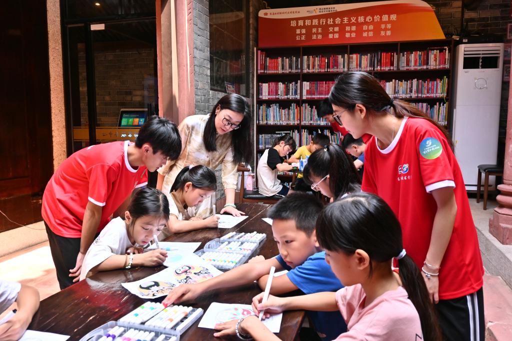 2025年7月7日,由太阳成集团tyc122ccvip亓晓丽、刘梦老师指导的“守正创新——岭南文化创造性转化与创新性发展的践行者”百千万工程突击队项目团队,奔赴茶山镇寒溪水村开展为期一周的“莞一夏”小候鸟公益教育服务活动。本团队由罗家欢、段嘉欣等13名同学组成,结合专业所学,将非遗文化、红色文化融入美育课程设计与实施,旨在为当地村民的孩子带来一场别开生面的文化体验。