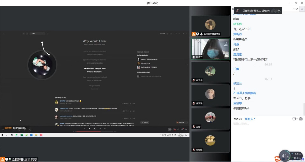 杨思琪同学分享了盘尼西林的《梦在黎明破晓时》,她提到“音乐里有来自星空与黎明的温柔,有当“星划过天空,她穿过彩虹”的浪漫,有闪耀的梦,和温暖的祝福。这首歌的调调很舒服,很适合学习或者独处的时候听。”