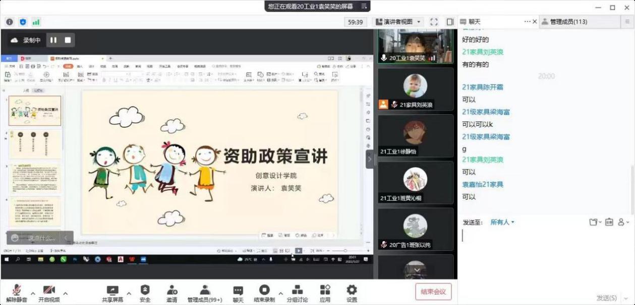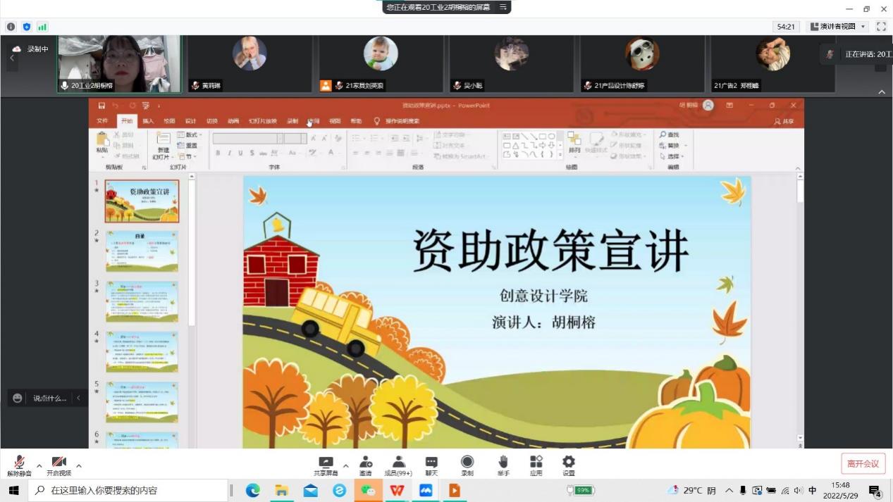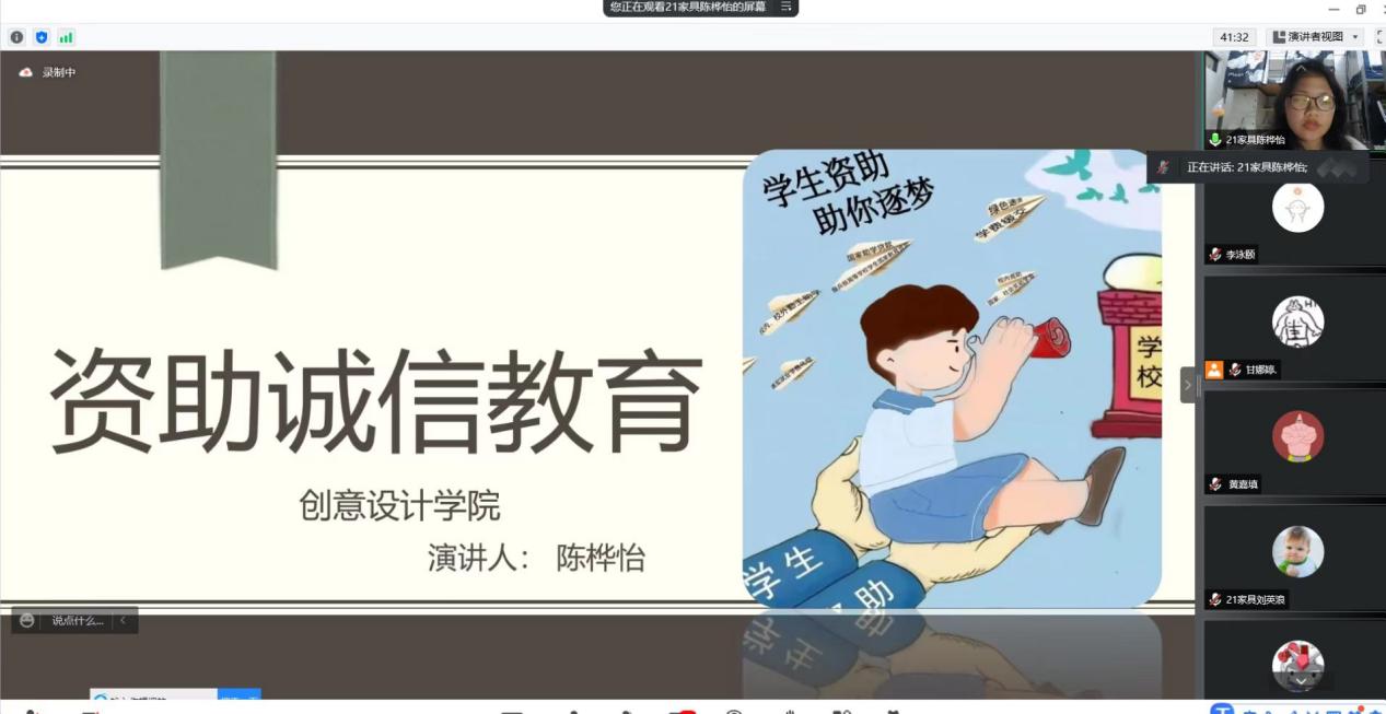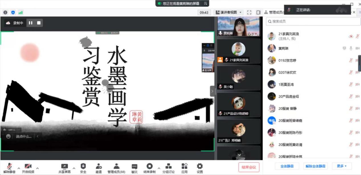 20级工业设计2班胡桐榕和20级产品设计班黄莉琳,介绍了国家励志奖学金、国家助学金、公司助学金等助学政策以及对名家字画作品案例进行分析,讲解中国水墨画、书法发展历史等,。