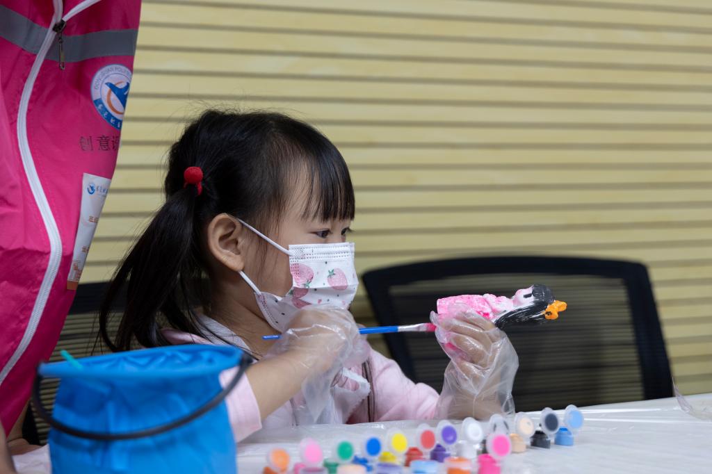 活动开始后由志愿者向小朋友们介绍活动的内容与操作方法,带领小朋友们学习石膏娃娃绘色的基础,并分享了自己提前完成的作品。分享结束后小朋友们领取自己喜欢的石膏娃娃开始进行彩绘,在志愿者的指导下,给石膏娃娃涂上自己喜爱的颜色,绘制出每个人独一无二的石膏娃娃。