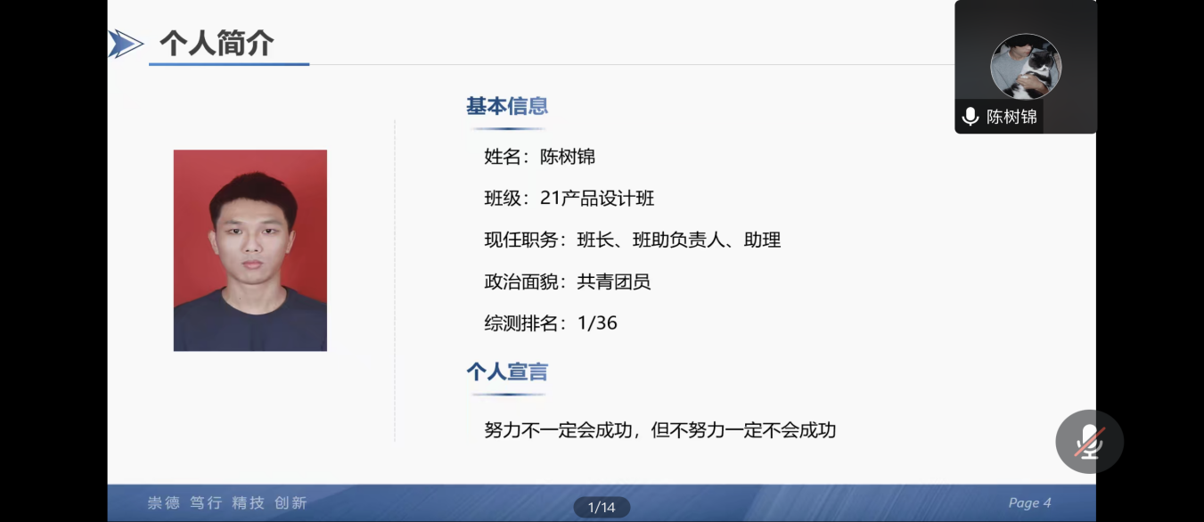 20工业设计一班的袁笑笑,主题:“享受生活坚定目标”。专心自律学习或许不是每个人生来都具有这样优秀的品质,但可以通过后天的学习而养成。