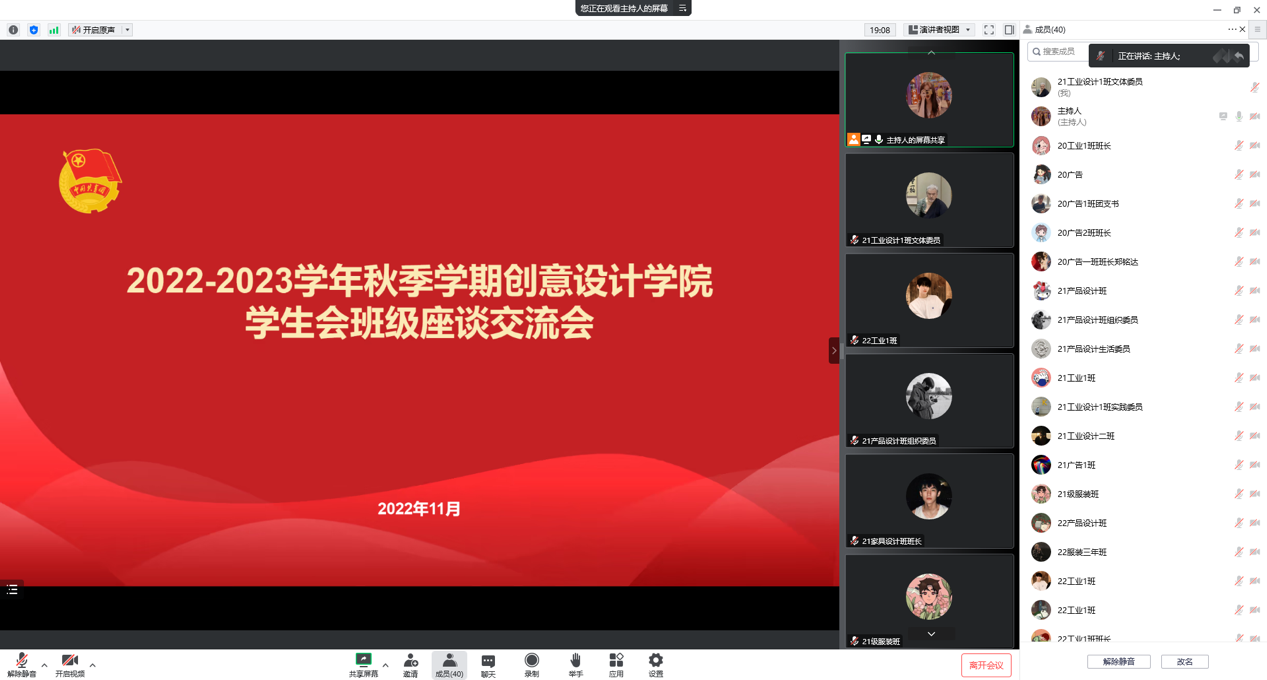 此次座谈交流会上,各班委会成员们积极发言,拉近了师生之间的距离。通过此次会议,希望各班委会成员们能够不忘初心,明确自身工作职责,充分发挥先锋模范带头作用,在未来的学习生活中为公司、公司贡献力量。