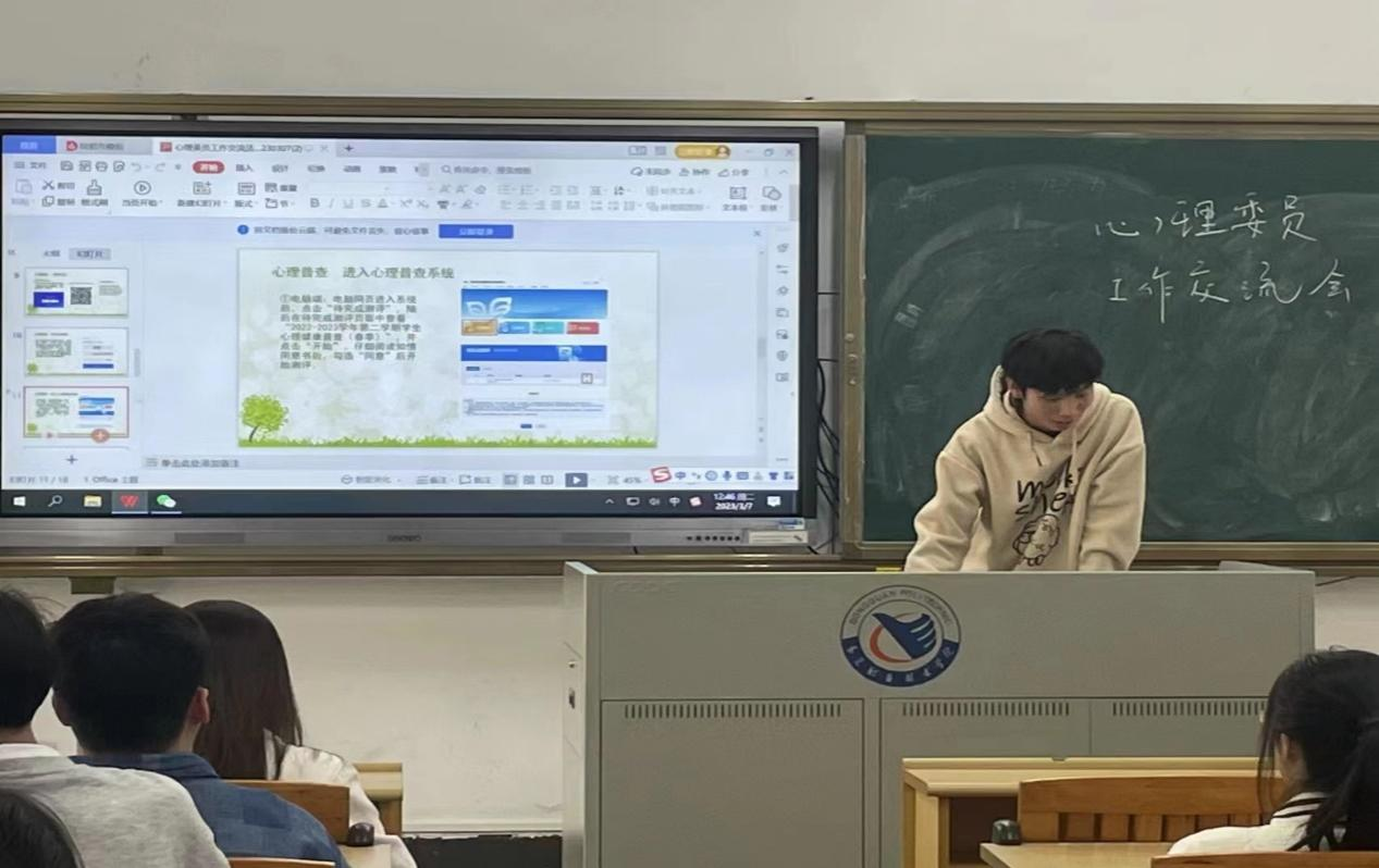 会议中,老师讲解了接下来对班级心理委员的培训与考核的相关工作要求。心理部干事为同学们讲解心理普查工作的操作流程,并介绍了公司心康中心的开放时间与预约方式。