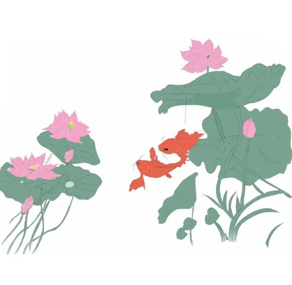 荷花是友谊的象征和使者,以此为墙绘的主要元素,白色和绿色为主色调,代表纯洁、自然、正直和真诚。荷花被称为“花中君子”,周敦颐在《爱莲说》中称其“出淤泥而不染,濯清涟而不妖。中通外直,不葛不枝,香远益清,亭亭净植。锦鲤有鱼跃龙门的传说,象征步步高升,九条锦鱼代表长久。