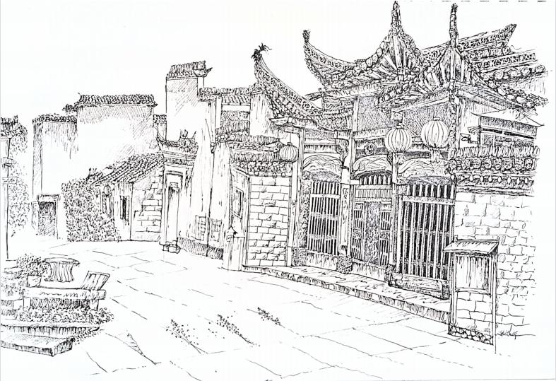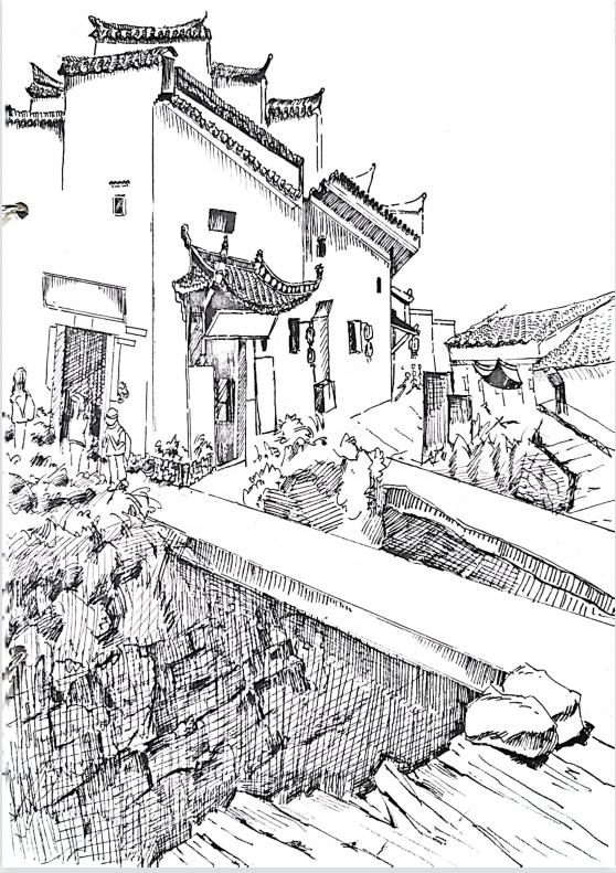我比较喜欢的地方是西递的景点特色。据了解,西递已有870多年的历史了。西递保存了十分具有代表性的徽派建筑,广泛采用砖、木、石雕表现出高超的装饰艺术水平。砖雕大多镶嵌在门罩、窗楣、照壁上,在大块的青砖上雕刻着生动逼真的人物、虫鱼、花鸟及八宝、博古和几何图案,极富装饰效果。这类徽派建筑让我在速写构图上受到了极大的启发,不得不赞叹古人精湛的技艺。