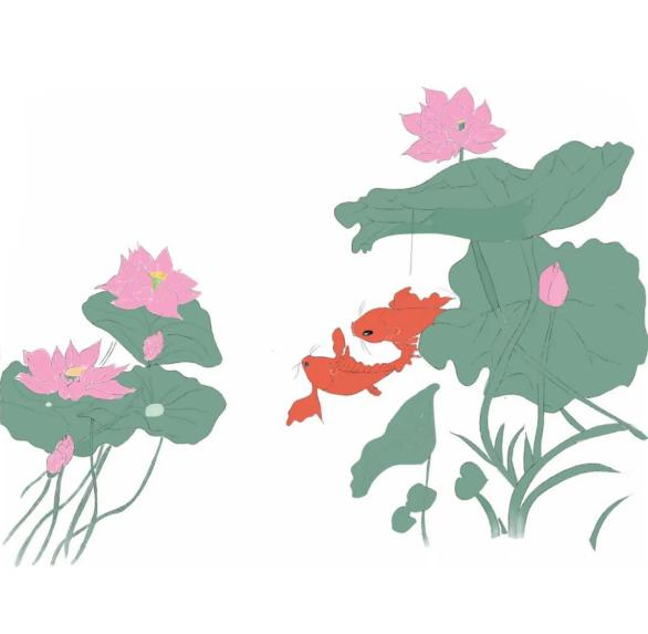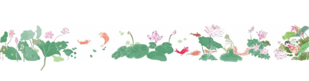 荷花是友谊的象征,白色和绿色为主色调,以此为墙绘的主要元素,代表纯洁、自然、正直和真诚,有出淤泥而不染。荷花被称为“花中君子”,周敦颐在《爱莲说》中称其“出淤泥而不染,濯清涟而不妖。中通外直,不葛不枝,香远益清,亭亭净植。锦鲤有鱼跃龙门的传说,象征步步高升,九条锦鱼代表长久。