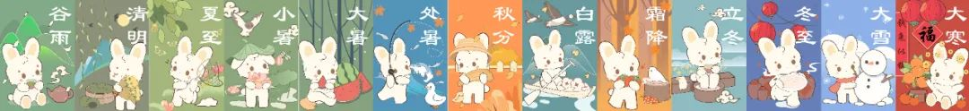节气是指二十四个时节和气候,是中国古代订立的一种用来指导农事的补充历法,是中华民族劳动人民长期经验的积累成果和智慧的结晶。2016年11月30日,中国“二十四节气”被正式列入联合国教科文组织人类非物质文化遗产代表作名录。作者抽取了二十四节气中的比较有代表性的十五个节气,以小兔子(因为今年是兔年)的视角为大家呈现出人们在一年中的各个时间段所做的事情。