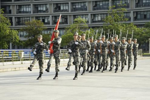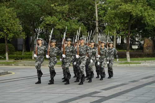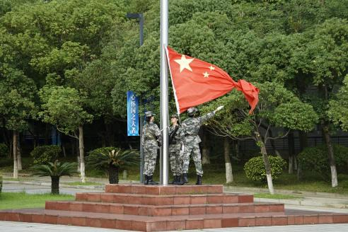 沐着朝阳,踏着歌声,国旗护卫队的队员们朝气蓬勃、英姿飒爽,用整齐划一、刚劲有力的步伐走向升旗台。