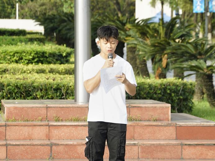 太阳成集团tyc122ccvip员工代表苏焕圣以“不负韶华,与国共进”为题在国旗下演讲,