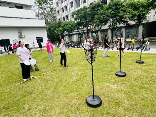 本次趣味运动会精心设计五大特色项目,将传统元素与创新玩法巧妙融合:“两人三足”挑战搭档默契,选手们步伐一致、口号嘹亮;“飞盘投篮”考验精准技巧,旋转的飞盘在空中划出优美弧线;“乒乓球接力”要求队员稳托小球快速穿梭,尽显协作智慧;“投壶”“抛绣球”重现古风雅韵,选手们专注投掷、默契配合。赛场上,欢呼声、加油声此起彼伏,各队成员齐心协力、奋勇争先,充分展现了团结协作、拼搏向上的精神风貌。