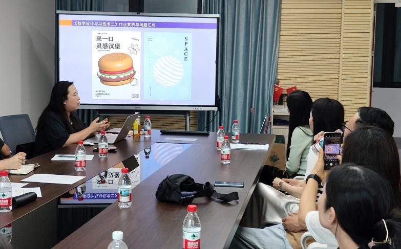 接下来,授课教师依次分享备课、课堂实施及员工作业情况,针对基础课程教学中遇到的各种问题老师们积极发言,进行了深入讨论。如课程内容如何与时俱进、思政元素如何挖掘和潜移默化地渗透、怎么引导员工写提示词、如何合理使用AI技术、如何明确版权等。通过互相分享教学心得和体会,不仅拓宽了教学思路,还学到了实用的教学方法和技巧,对于提升教学质量和效果具有积极意义。
