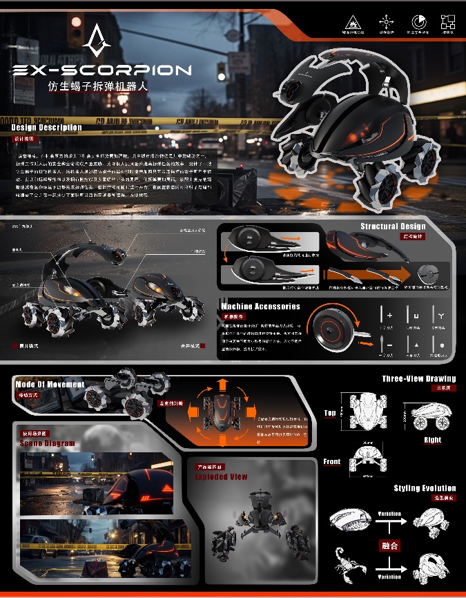 洪培源《EX-scorpion仿生蝎子拆弹机器人 》,指导教师:吕珊