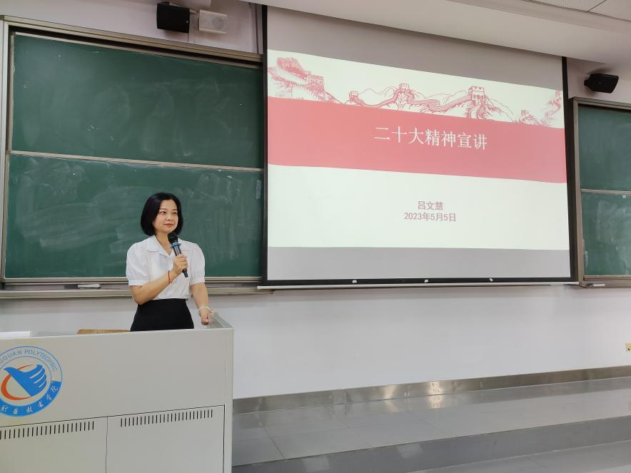 2023年5月5日,辅导员吕文慧老师面向院团委80名员工团干讲述了党的二十大召开的重要意义,并结合党史和优秀共产党员典型事迹,勉励同学们要珍惜青春年华,珍惜大学时光,科学规划老员工活,始终把学习作为首要任务,志存高远,在将来学习、工作和生活中,不仅要实现自身价值,更要实现社会价值,让奋斗成为青春最亮丽的底色。
