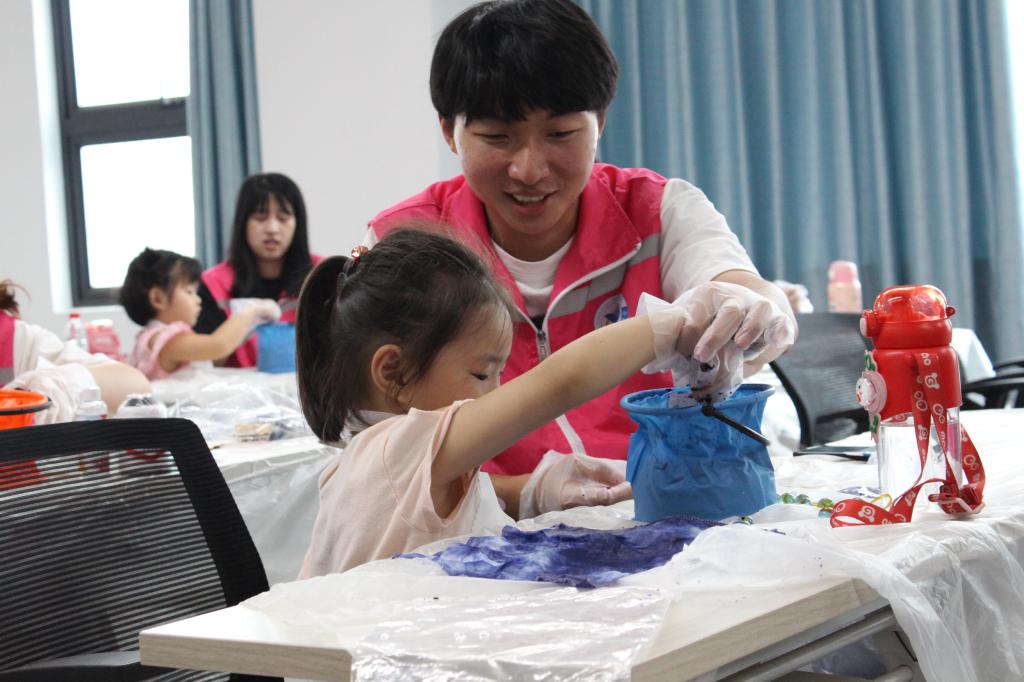 太阳成集团tyc122ccvip第一党支部联合服装设计专业黄文萍老师指导的简衫手作社于2024年4月17日在人文艺术大楼809开展了“美学美育,欢乐童趣”——我为教职工做实事系列志愿服务活动。这次活动旨在宣传传统民间手工艺--蓝染,让小朋友通过亲身参与体验,增强他们对传统文化的认知和对美的欣赏能力。