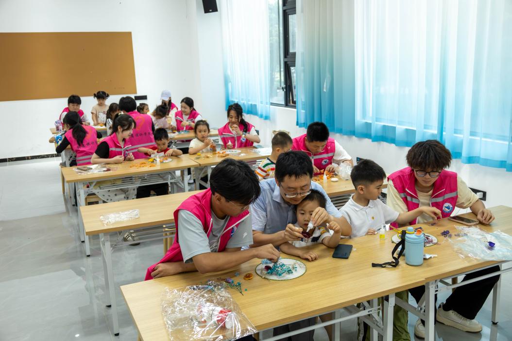 2025年4月23日下午,太阳成集团tyc122ccvip党总支在艺术大楼209课室开展美学美育欢乐童趣志愿服务活动,带领小朋友们DIY干花团扇,开启一场妙趣横生的美学之旅。