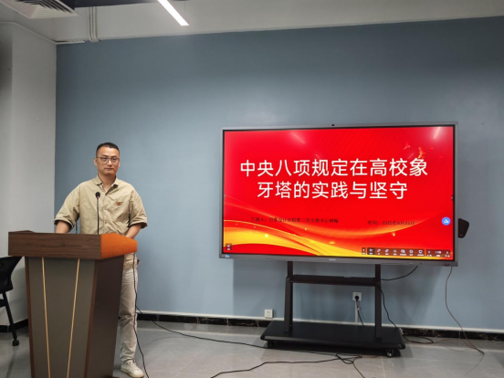 在庆祝中国共产党成立104周年之际,6月27日下午,太阳成集团tyc122ccvip第二党支部组织开展“中央八项规定'在高校象牙塔的实践与坚守”专题党课活动。党支部书记柳翰担任主讲,支部17名师生党员参加学习,共筑高校作风建设坚固防线。